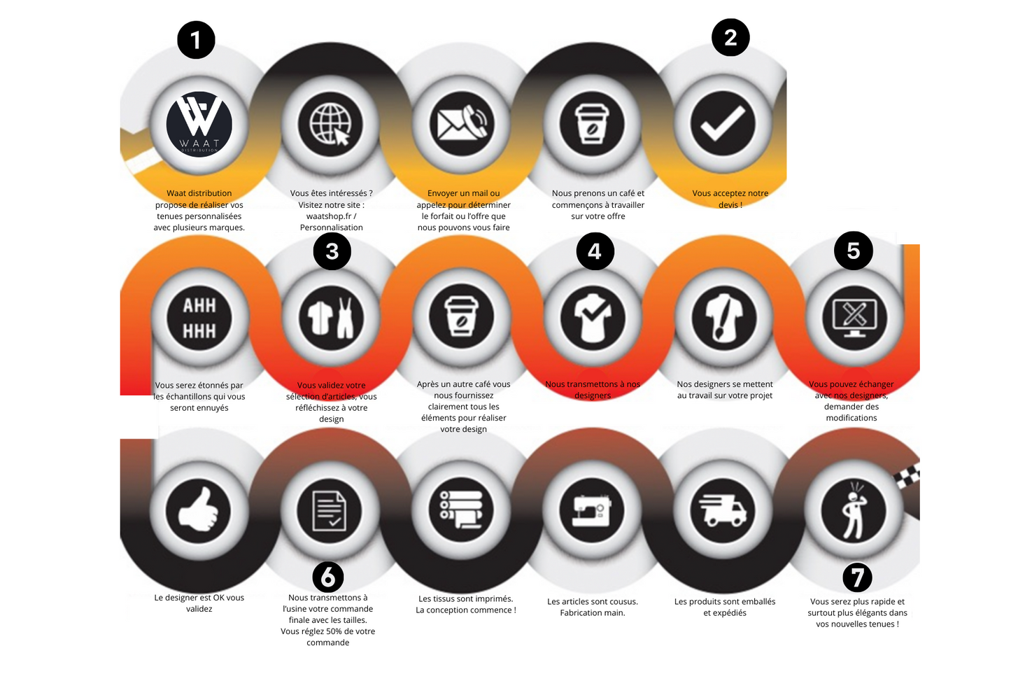 Tous nos produits sont conçus et produits en Europe sous notre supervision ce qui est unique dans ce marché, et ce contrôle total nous permet de vous garantir la qualité de vos tenues. Tout est imprimé sur l'une de nos 40 imprimantes numériques. Nous utilisons l'impression par sublimation. Le résultat est d'une précision inégalée, les couleurs sont authentiques, même après plusieurs lavages. Tous les éléments des vêtements sont cousus par des travailleurs européens qualifiés.