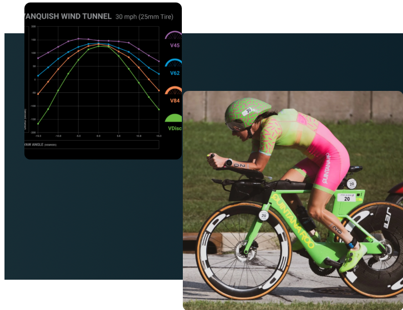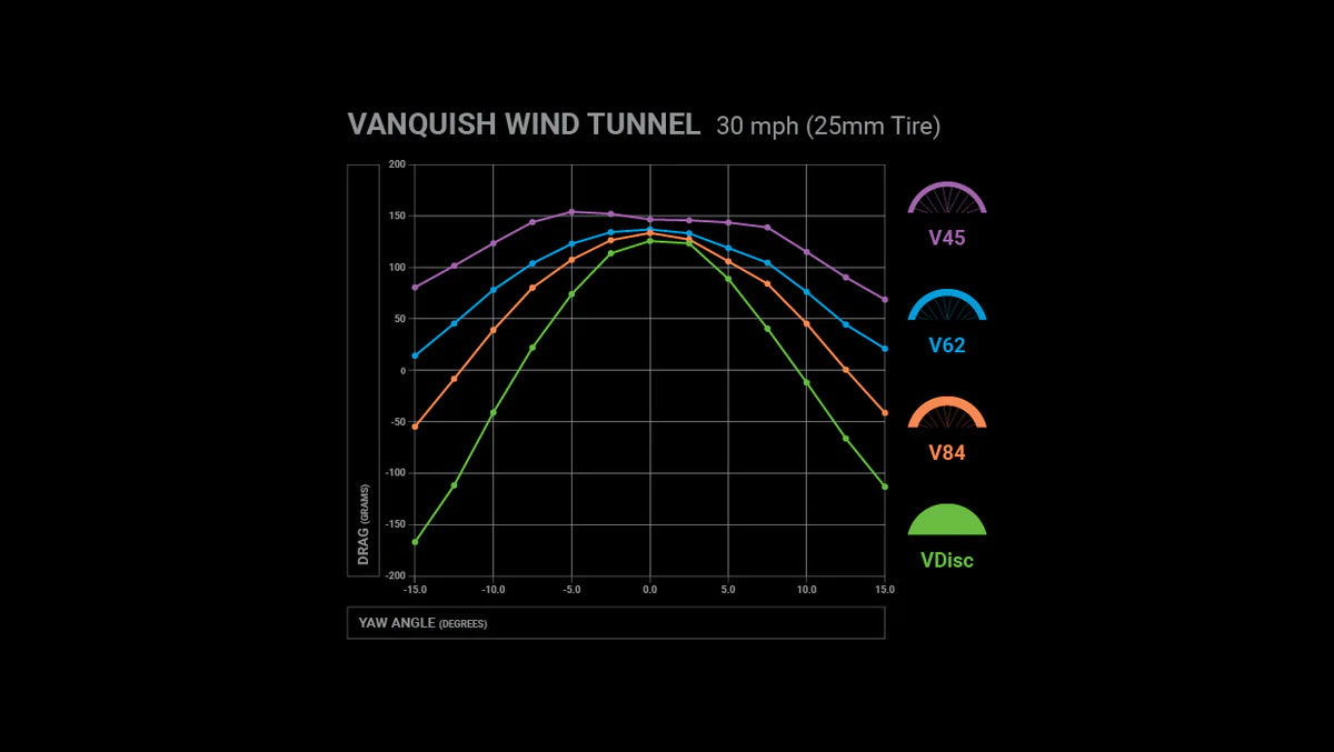 « La nouvelle génération de roues Vanquish a obtenu des résultats remarquables en soufflerie. Nous avons constaté une amélioration générale de la stabilité tout en réduisant au minimum la résistance aérodynamique. Les cyclistes peuvent s'attendre à une poussée constante vers l'avant grâce à leurs nouvelles roues, tout en bénéficiant d'une maniabilité stable par vent latéral. »